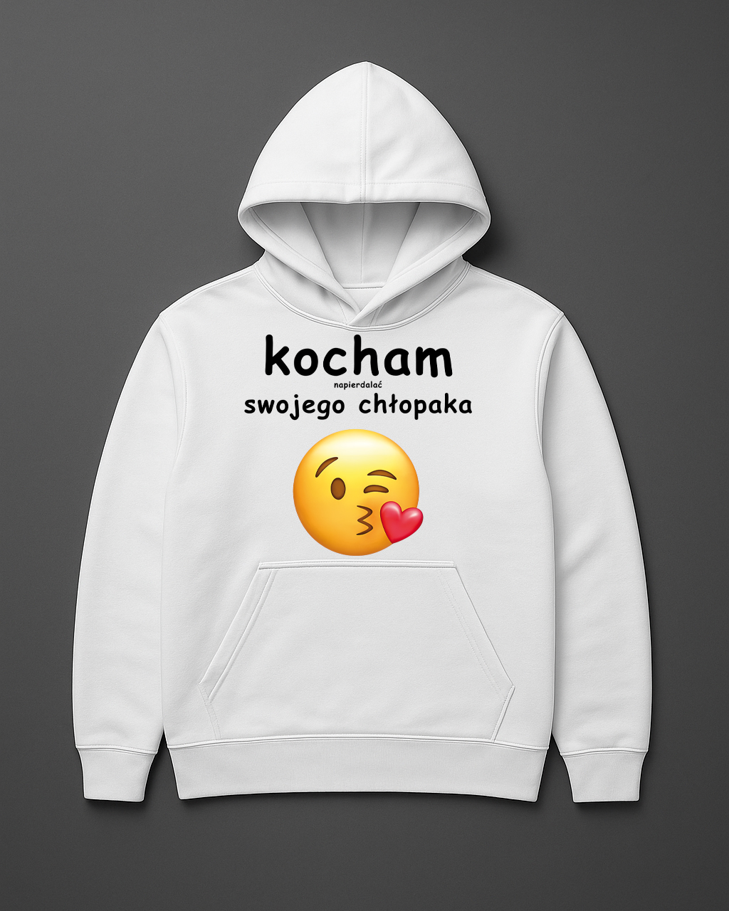 Internet kocha memy i bluzy z humorem. Napis Kocham swojego chłopaka to oczywiście żart z dystansem – i właśnie dzięki temu ta bluza wywołuje uśmiech, gdziekolwiek się pojawi. Jeśli masz cięty humor i nie boisz się śmiać z siebie – to Twoja bluza.