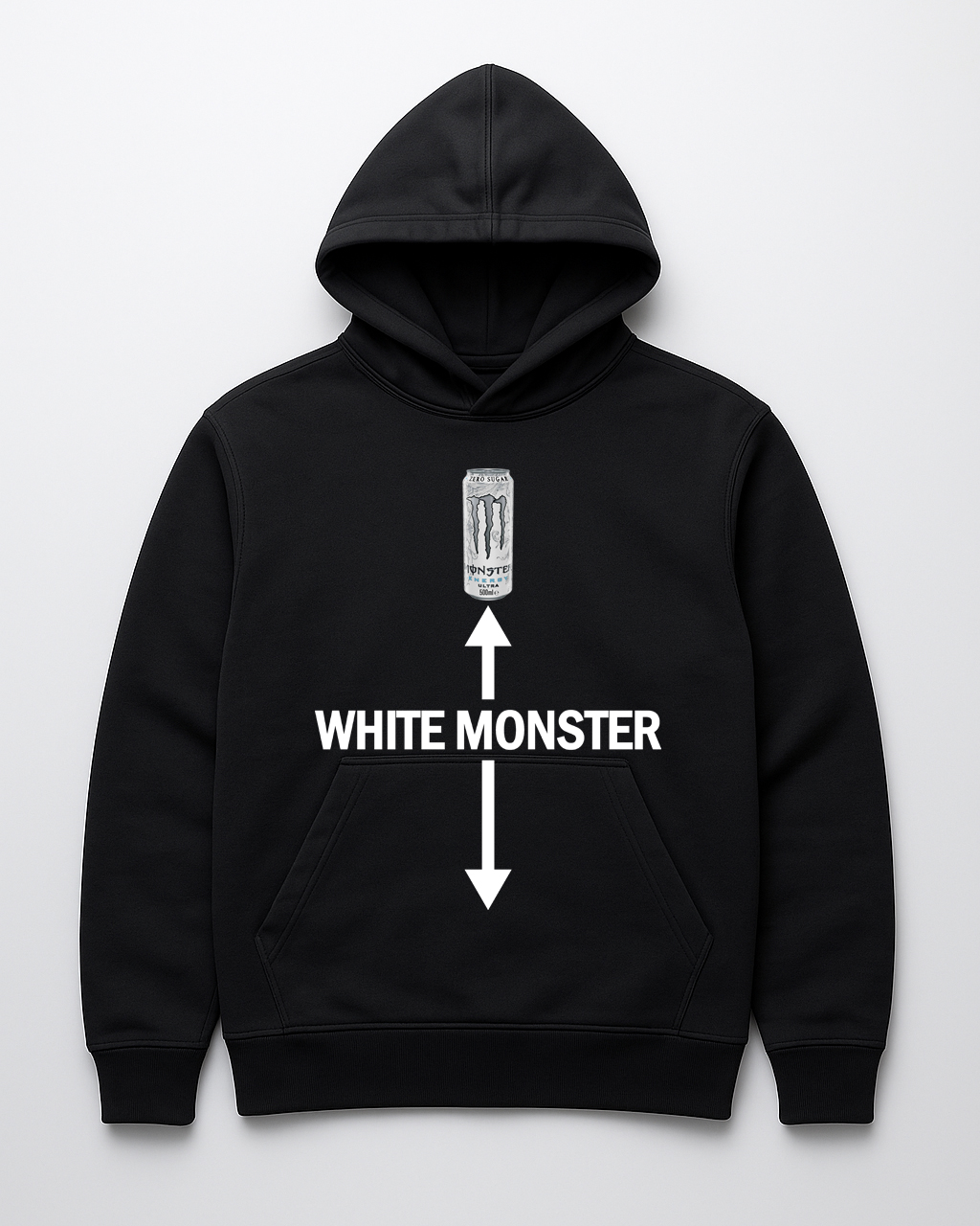Bluza dla prawdziwych fanów White Monstera – tego z puszki i tego z… no, wiadomo skąd. Strzałki robią robotę, a napis wyjaśnia resztę. Idealna na imprezy, nocne maratony i wszystkie sytuacje, w których chcesz być chodzącą puszką beki. Druk DTF – nie spierze się, nawet jeśli wypijesz tyle energetyków, że twoja pralka zacznie drgać w rytmie drum’n’bass.