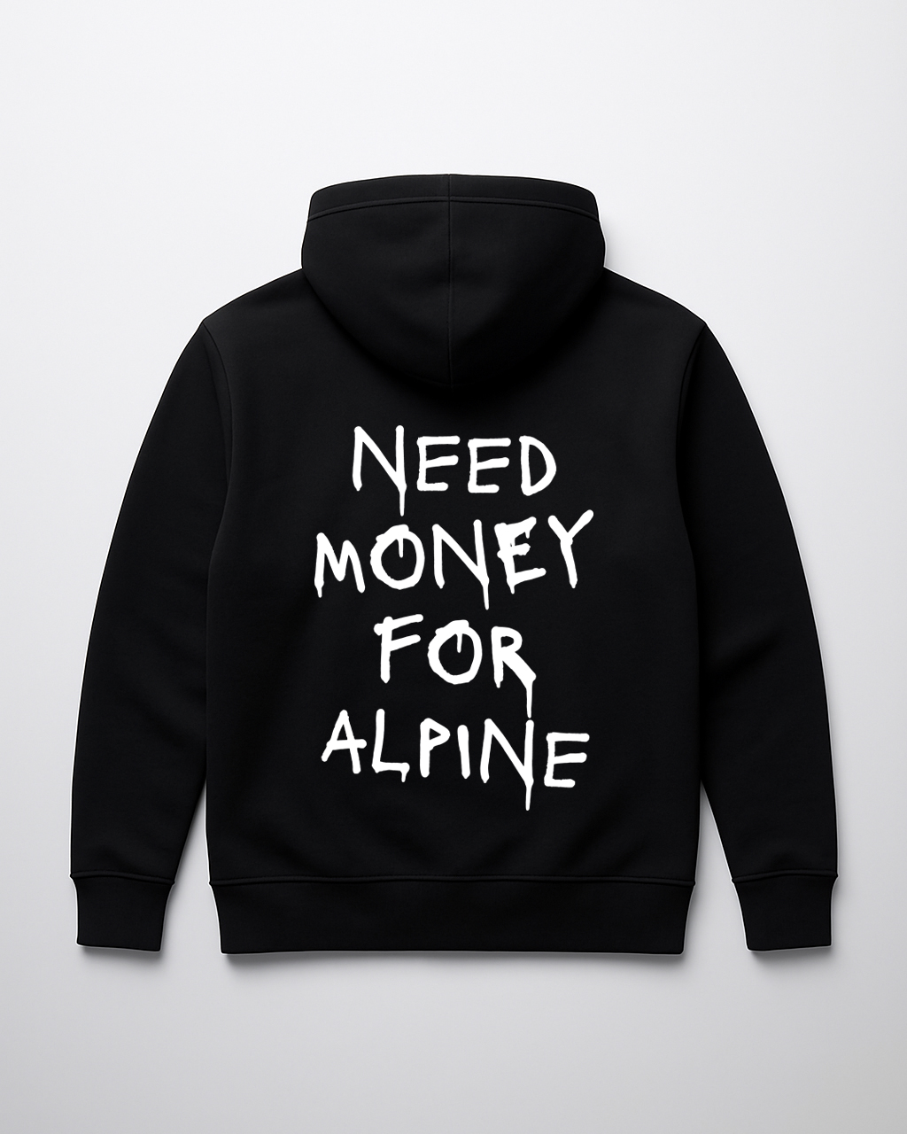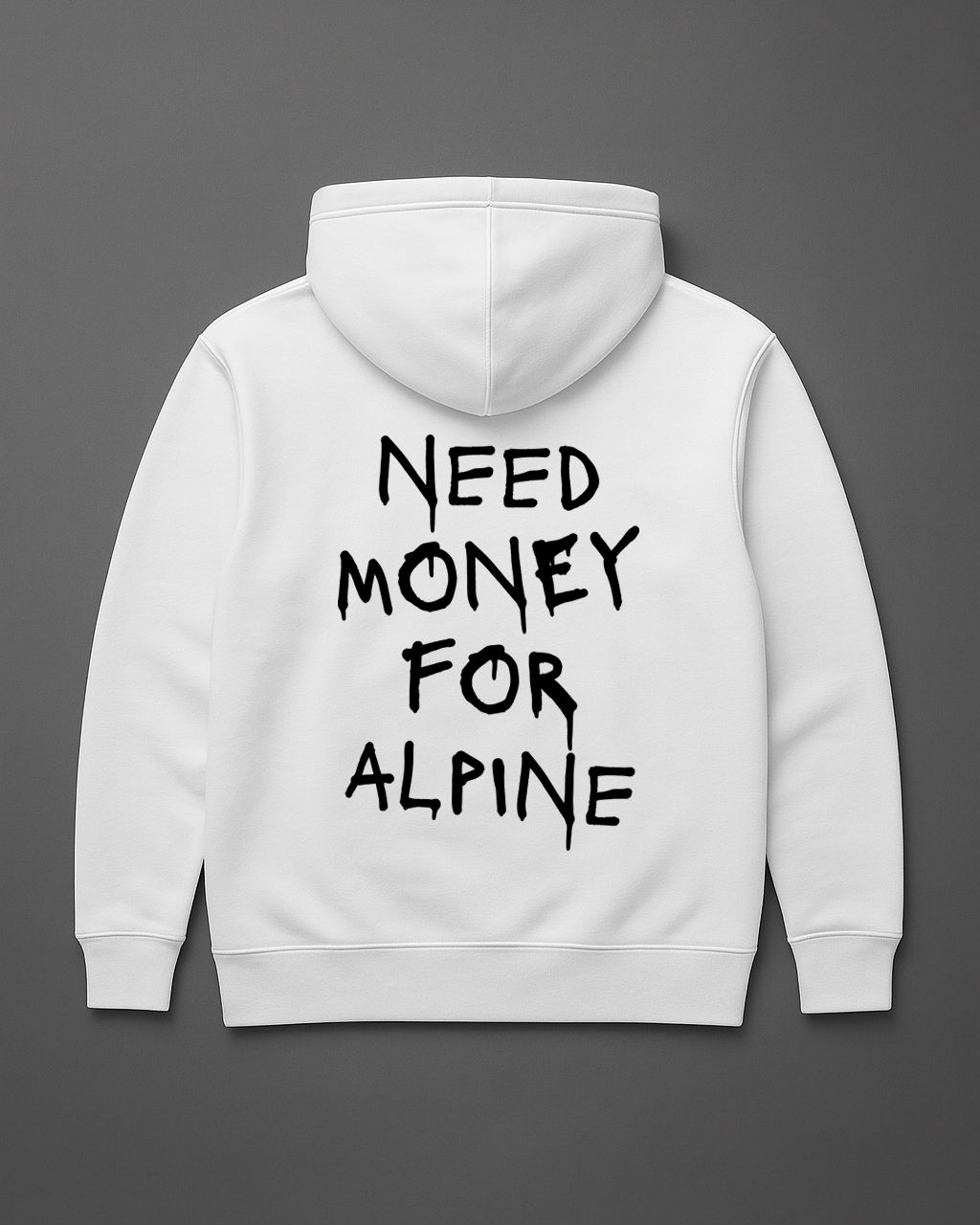 Bluza Need Money For Alpine to prosty manifest motoryzacyjnych marzeń i zdrowego rozsądku. Kasa jest tylko środkiem do celu. Cel jest szybki, lekki i francuski. Hasło mówi wprost, bez ściemy i bez filozofii. Trwały nadruk DTF ogarnie więcej niż budżet po pierwszym sprawdzeniu cen części i serwisu.