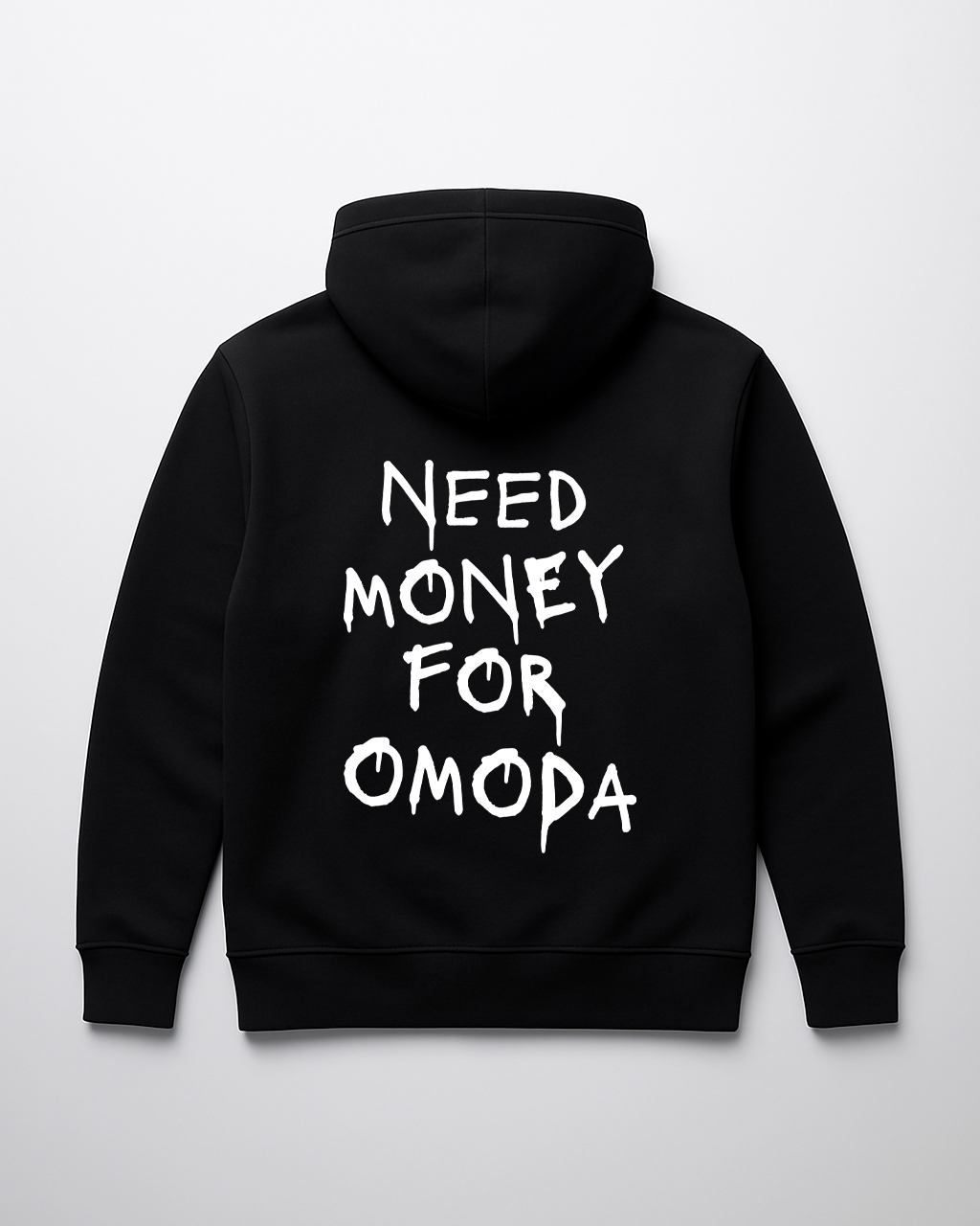 Bluza Need Money for Omoda to prosty, ironiczny tekst dla tych, którzy wiedzą, że nowa marka też potrafi wciągnąć finansowo, a trwały nadruk DTF ogarnia codzienne noszenie i pranie bez problemu.
