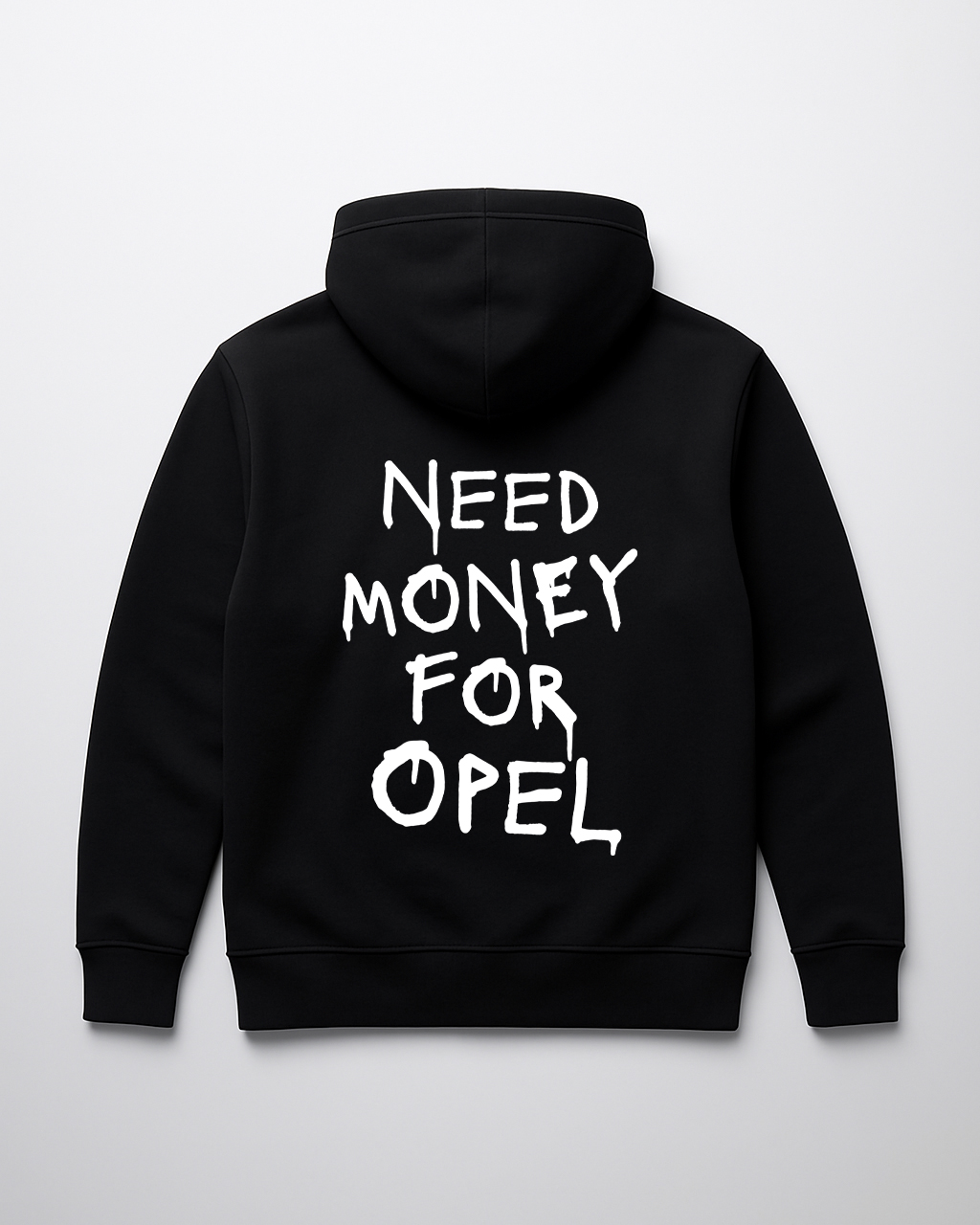 Bluza Need Money for Opel to ironiczny komentarz dla fanów marki, którzy wiedzą że utrzymanie auta boli portfel, a trwały nadruk DTF zapewnia wyrazisty wygląd i odporność na pranie oraz codzienne noszenie.