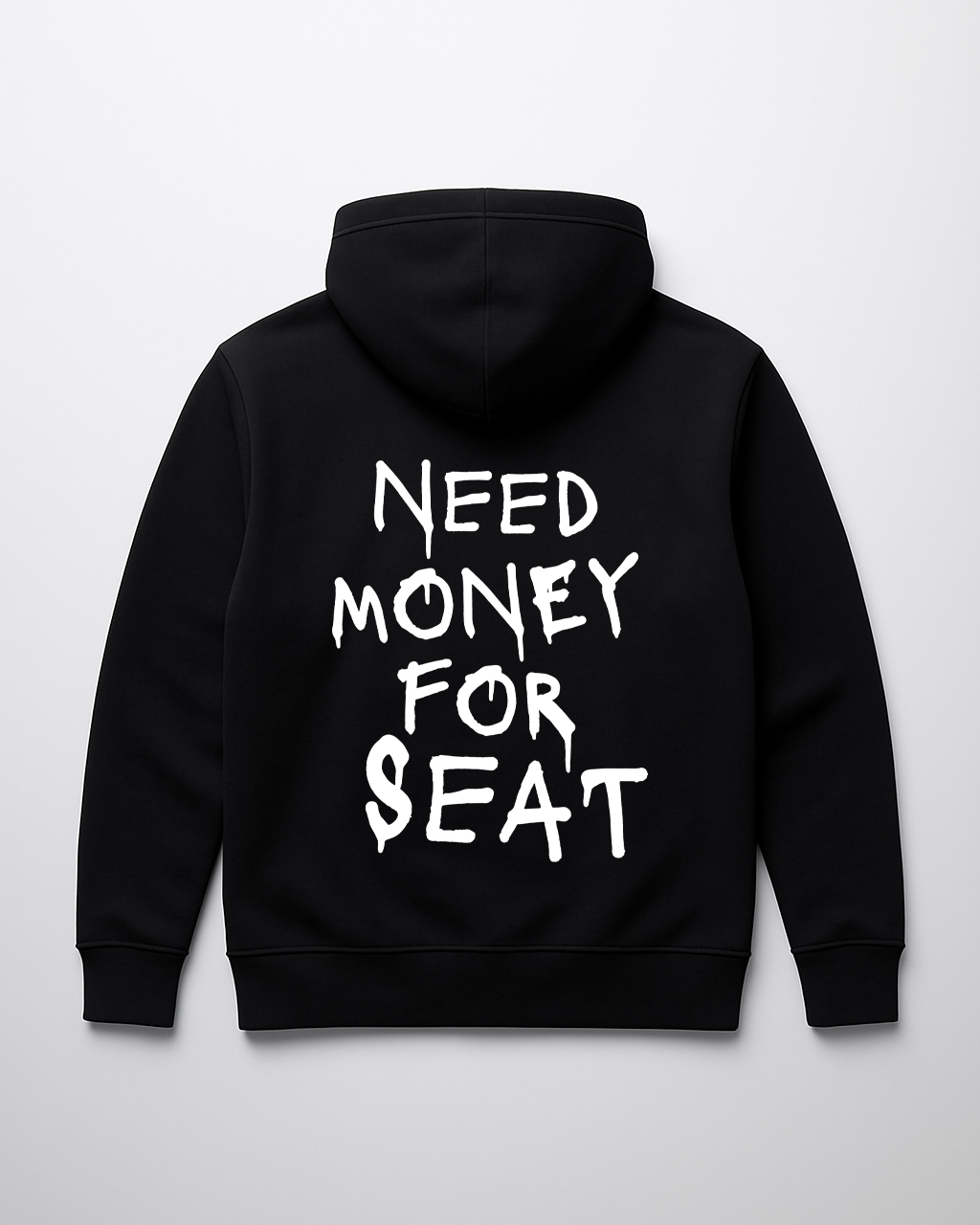 Bluza Need Money for SEAT to prosty motoryzacyjny żart dla fanów marki, wyrazisty napis przyciąga uwagę a trwały nadruk DTF gwarantuje intensywny efekt i odporność na pranie.
