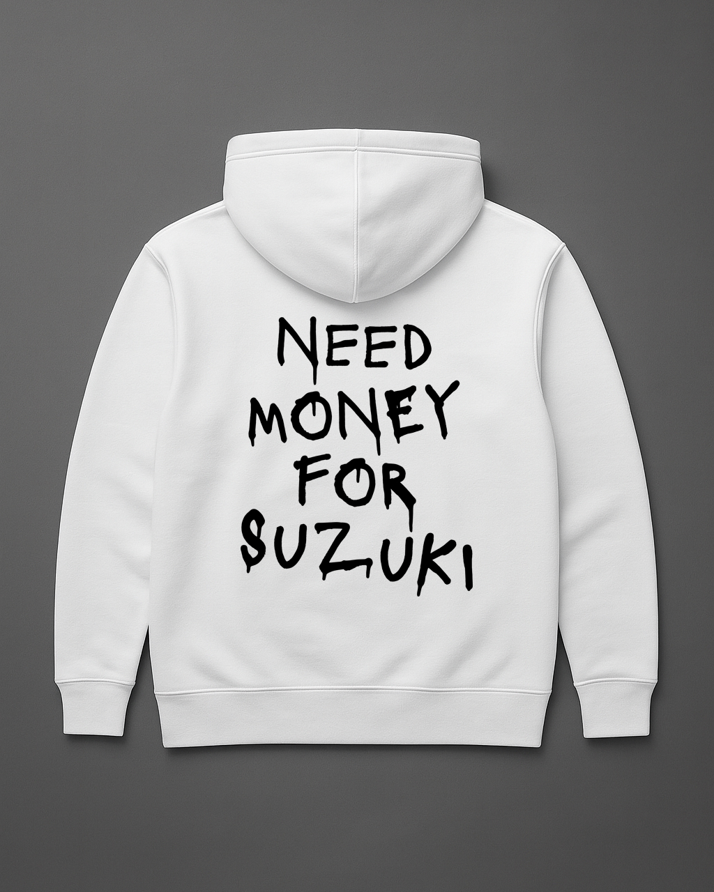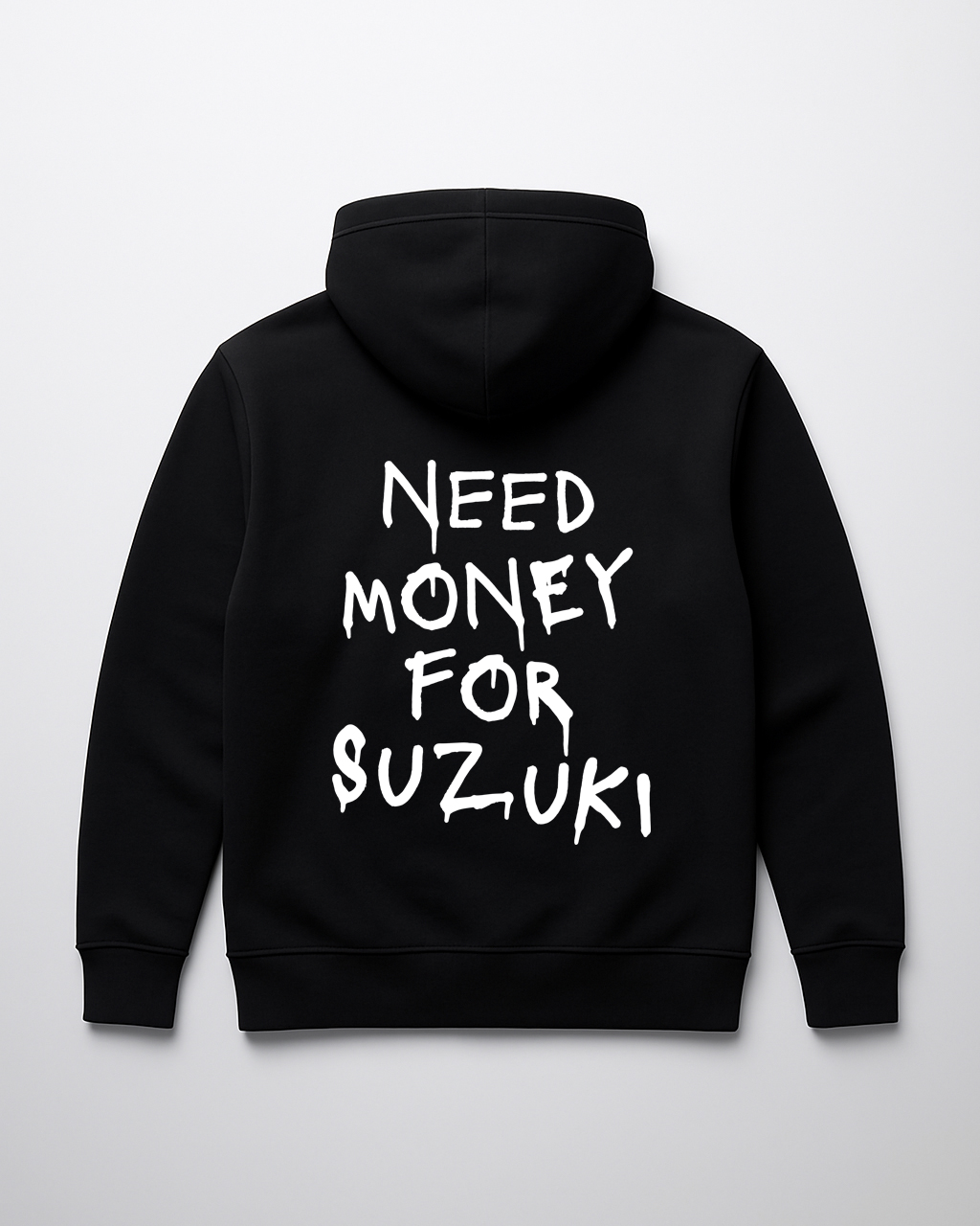 Bluza Need Money for Suzuki to prosty, ironiczny przekaz dla fanów japońskiej motoryzacji, wyrazisty napis przyciąga uwagę, a trwały nadruk DTF zapewnia odporność na pranie i codzienne użytkowanie.