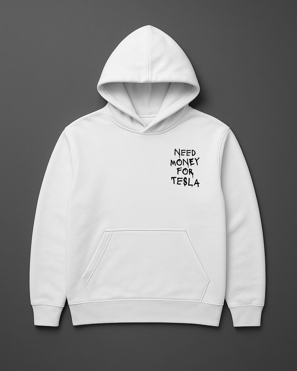 Bluza Need Money for Tesla to bezpośredni motoryzacyjny statement dla fanów nowoczesnej technologii i elektrycznej jazdy, minimalistyczny napis jasno komunikuje cel i dystans do siebie, a trwały nadruk DTF zapewnia wysoką odporność na pranie i intensywne użytkowanie, dzięki czemu grafika wygląda dobrze przez długi czas.