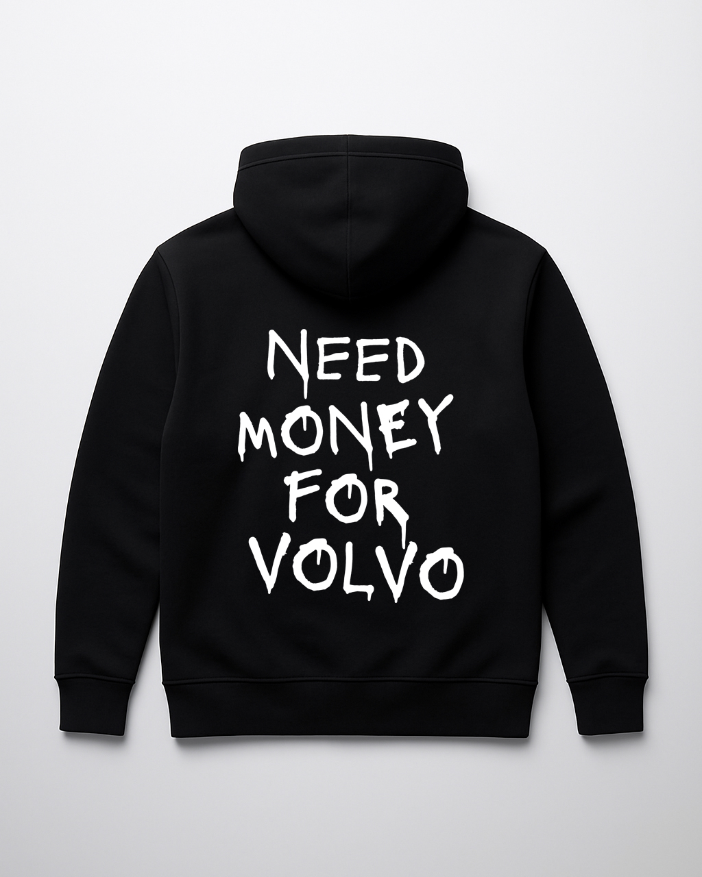 Bluza Need Money for Volvo to suchy, motoryzacyjny żart dla fanów szwedzkiej solidności, bo bezpieczeństwo kosztuje, a charakterystyczny napis robi robotę, trwały nadruk DTF jest odporny na pranie i noszenie, więc tekst nie zniknie szybciej niż twoje oszczędności.