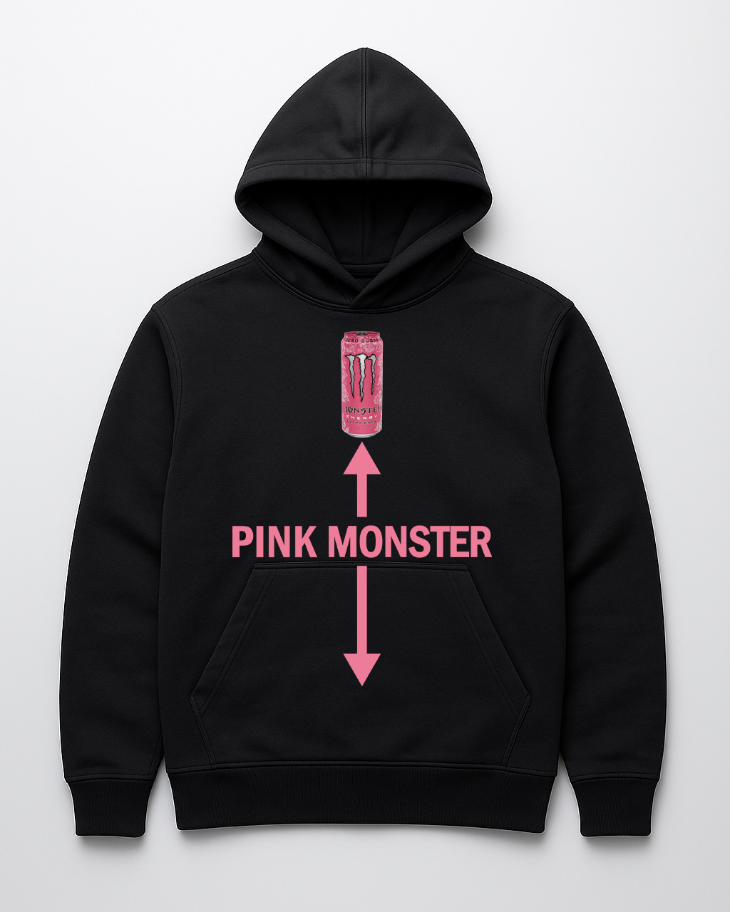 Bluza PINK MONSTER – subtelna jak walnięcie energola o 6 rano i równie dwuznaczna. Strzałki wskazują kierunek, napis robi robotę, a różowy potwór udaje, że chodzi tylko o napój. Idealna dla tych, którzy lubią humor na granicy i nie boją się, że ktoś odczyta to… zbyt dosłownie. Druk DTF trzyma się lepiej niż Twoje wymówki po imprezie.