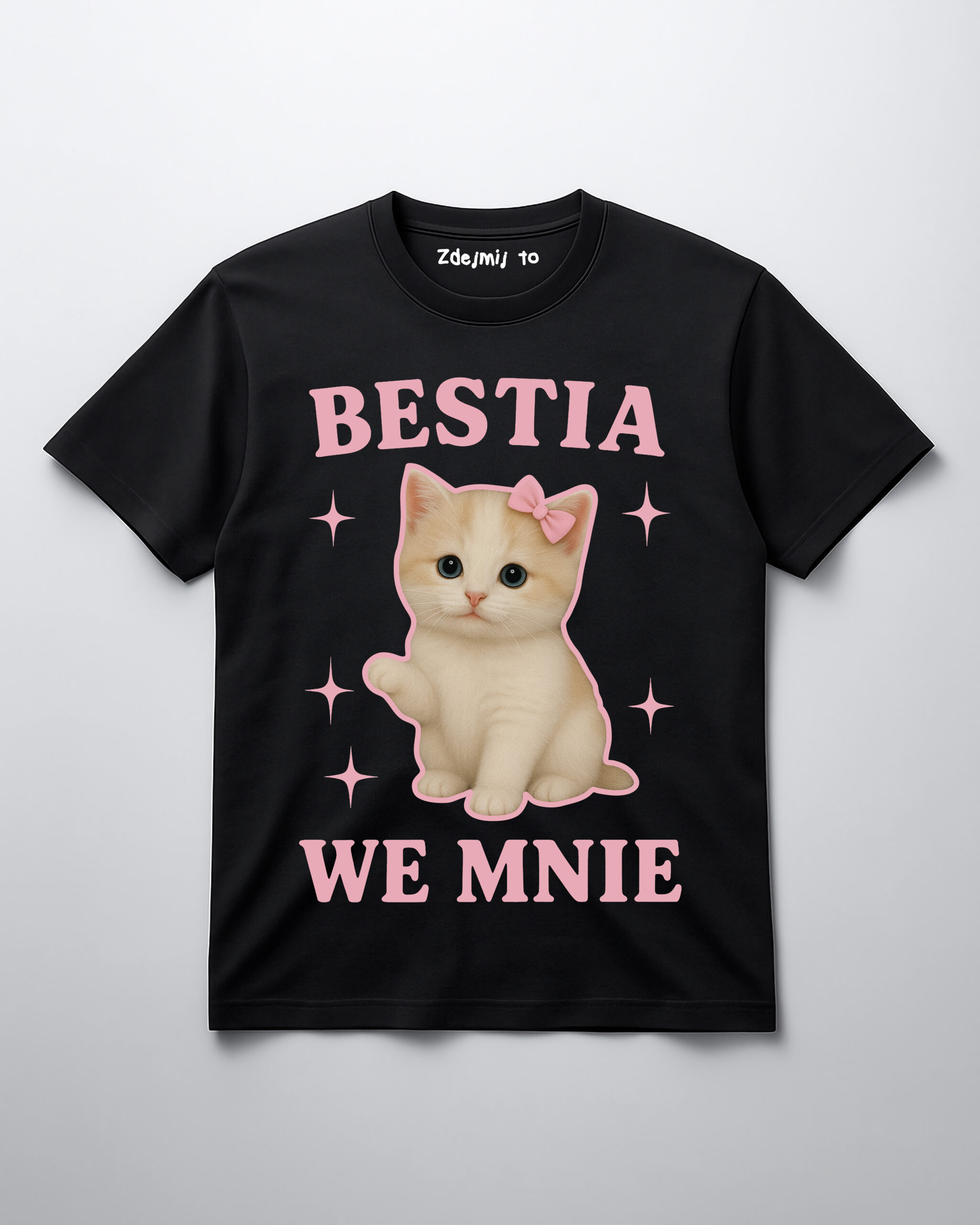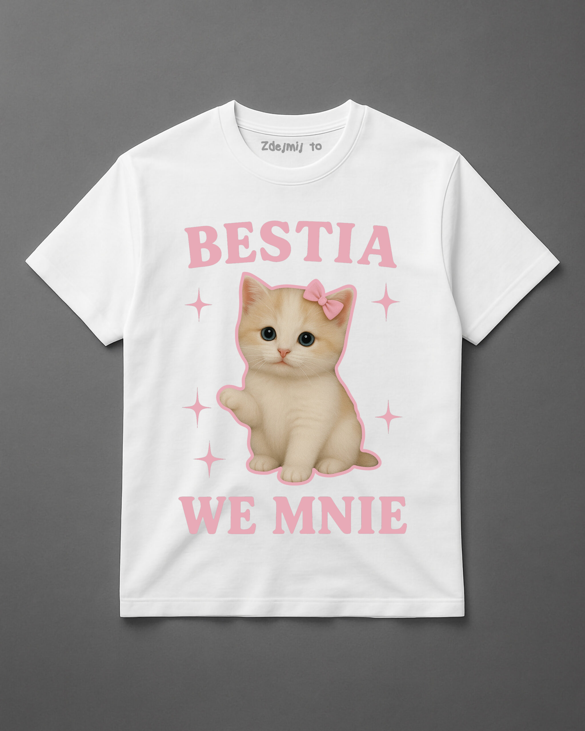 Koszulka „Bestia we mnie” wygląda słodko, ale daje do zrozumienia, że pod pozorem niewinności kryje się coś… zupełnie innego 🐱✨. Idealna dla tych, którzy lubią bawić się kontrastem i wywoływać lekkie zamieszanie spojrzeniem. Druk DTF – przetrwa każdą nocną akcję i poranne pranie.
