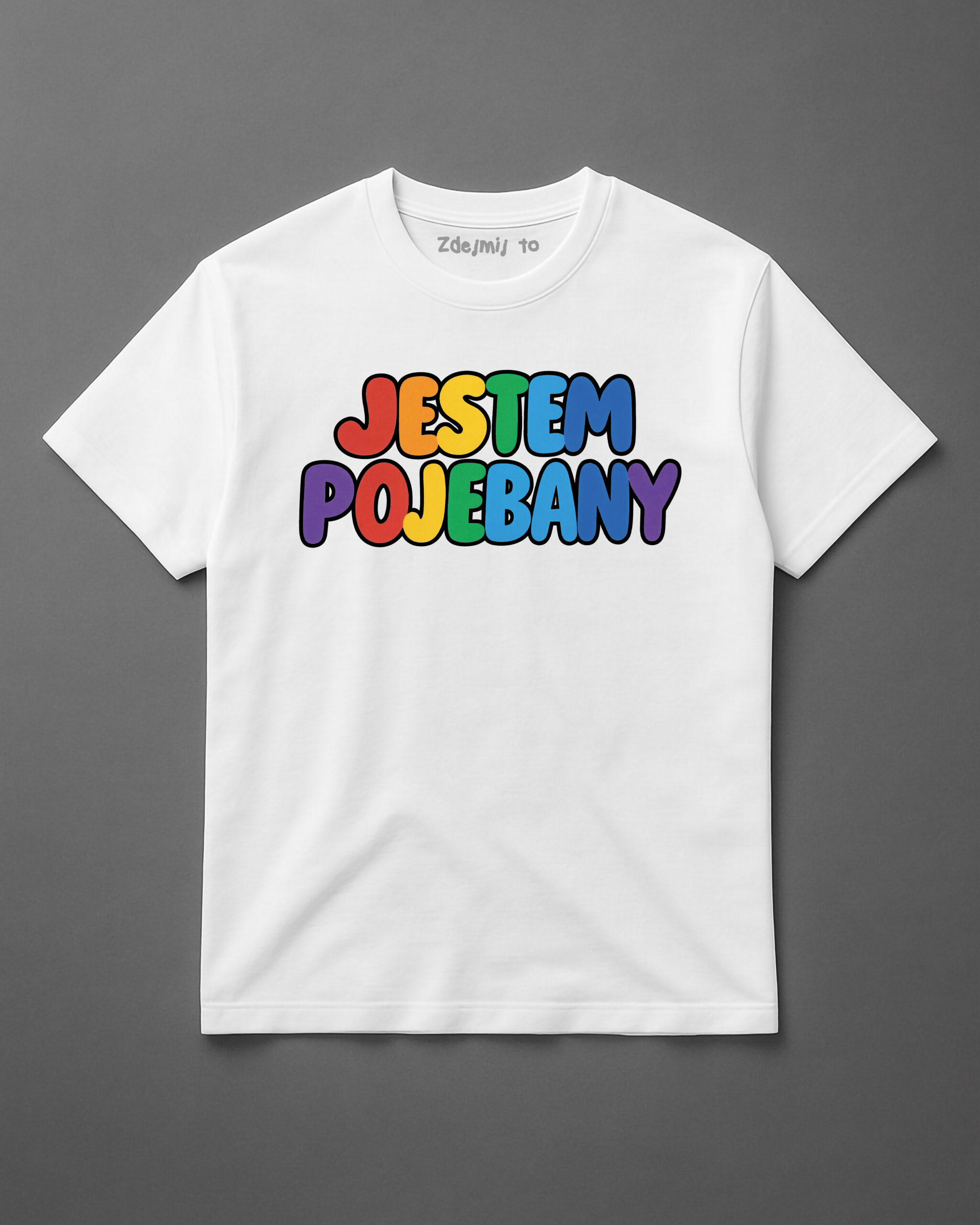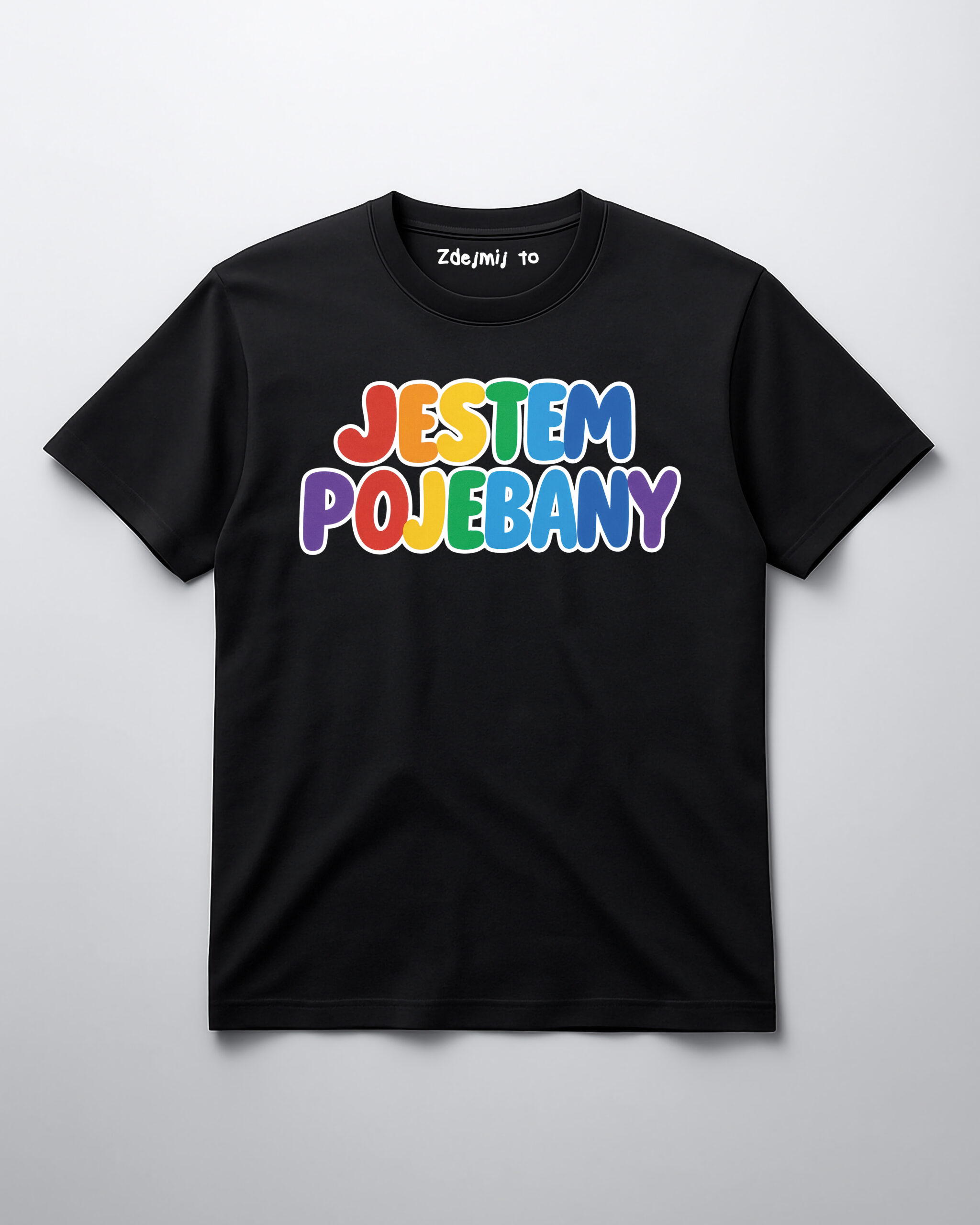 Koszulka, która nie owija w bawełnę 🌈. Kolorowy napis „Jestem pojebany” to manifest luzu i dystansu do siebie – w sam raz, żeby rozbroić atmosferę i rozkręcić imprezę. Druk DTF wytrzyma każde pranie i każdy przypał.