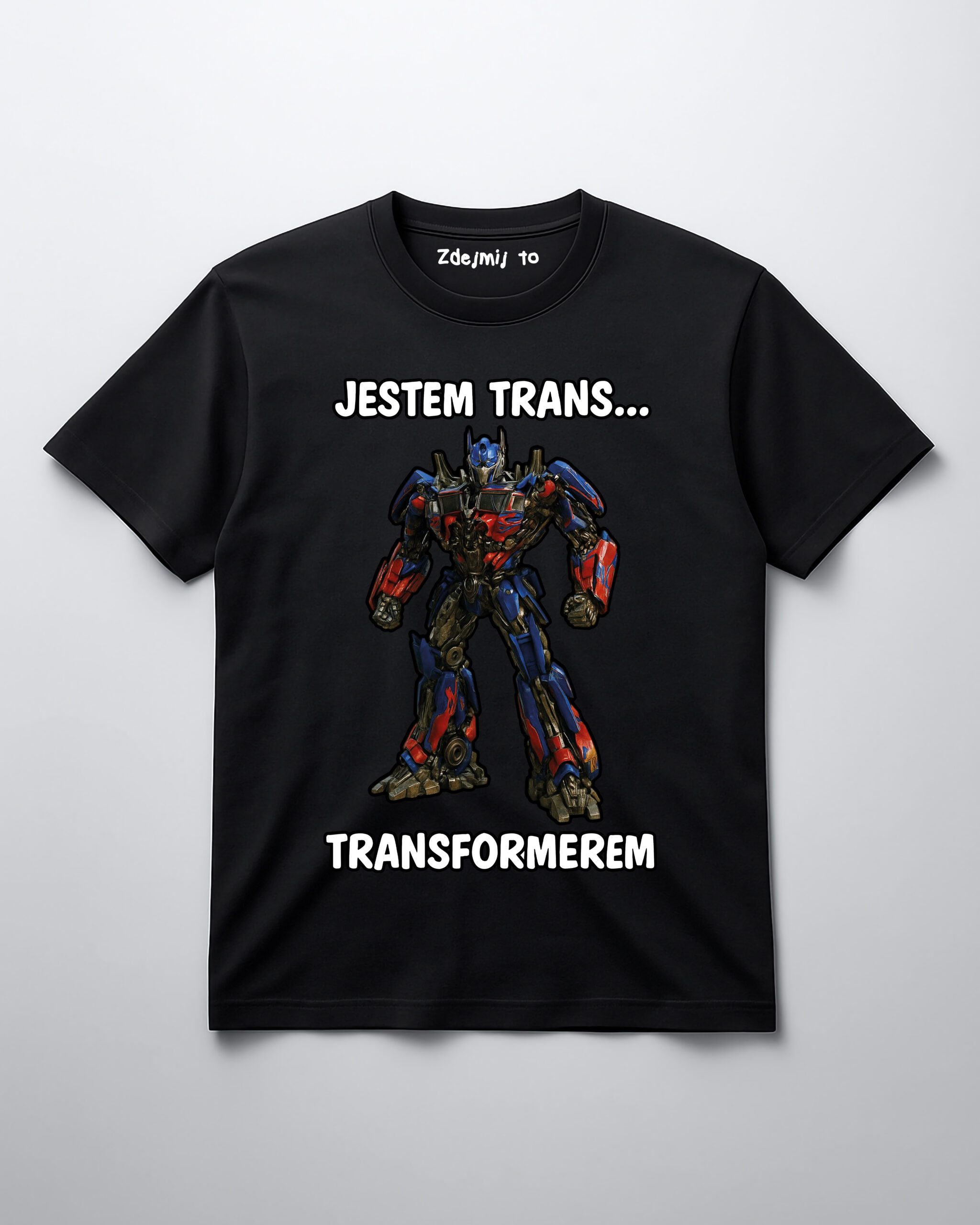 „JESTEM TRANS… TRANSFORMEREM” – idealna koszulka dla tych, co lubią zaskakiwać i mają w sobie więcej mocy niż silnik z Cybertronu. Autoironia, popkultura i błysk metalu w jednym. Noś ją z dumą – bo nie każdy bohater nosi pelerynę, niektórzy mają skrzynię biegów.