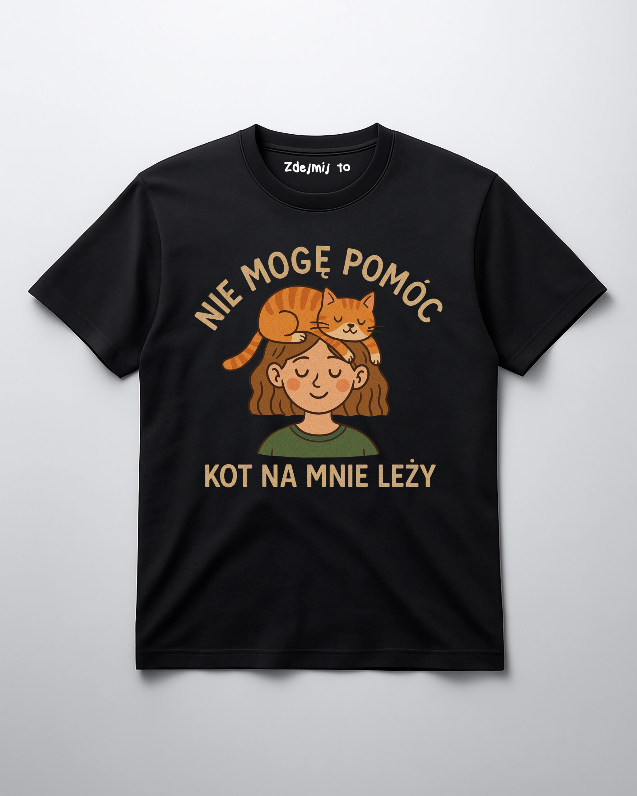 Śmieszna koszulka KOT NA MNIE LEŻY – idealna na prezent