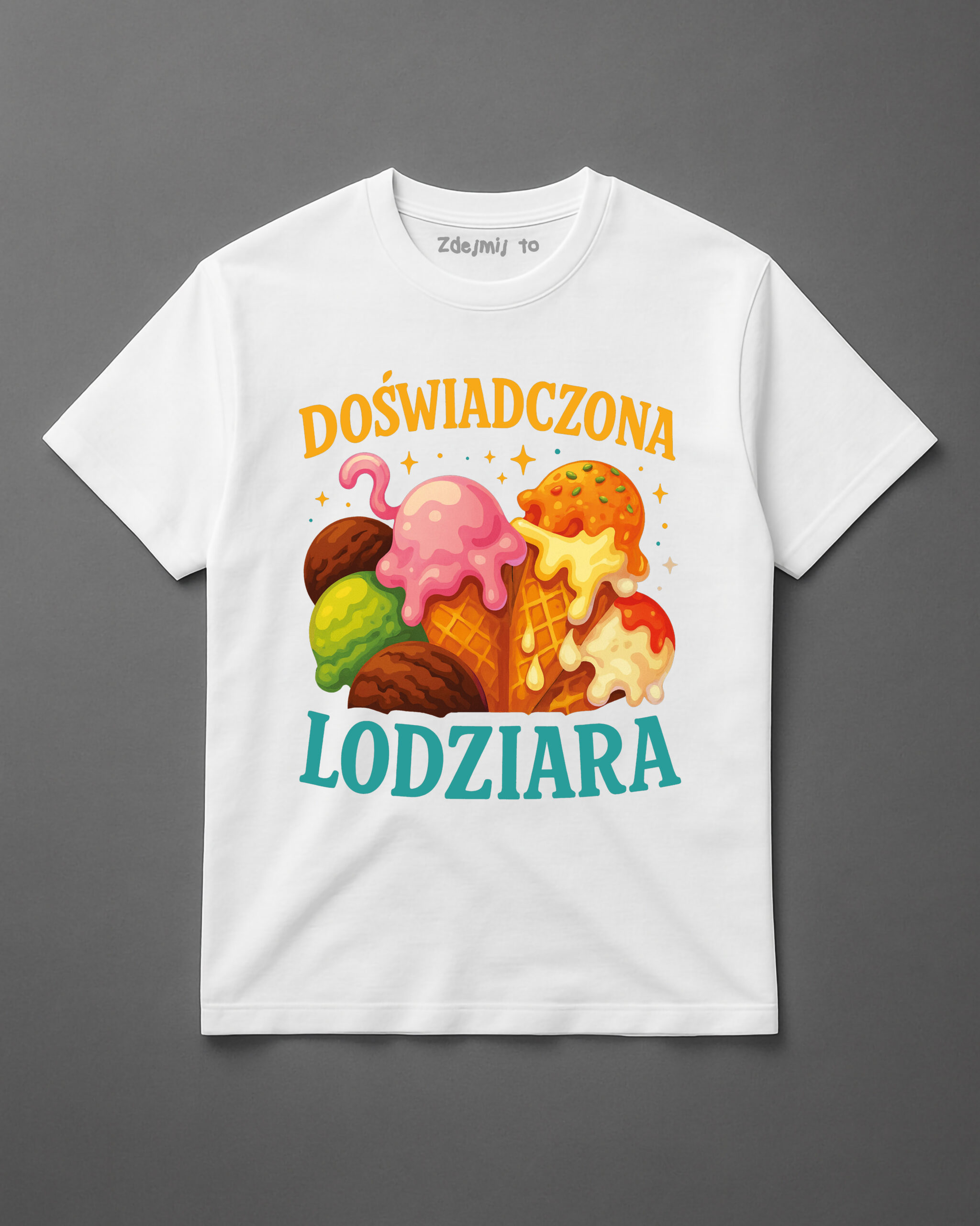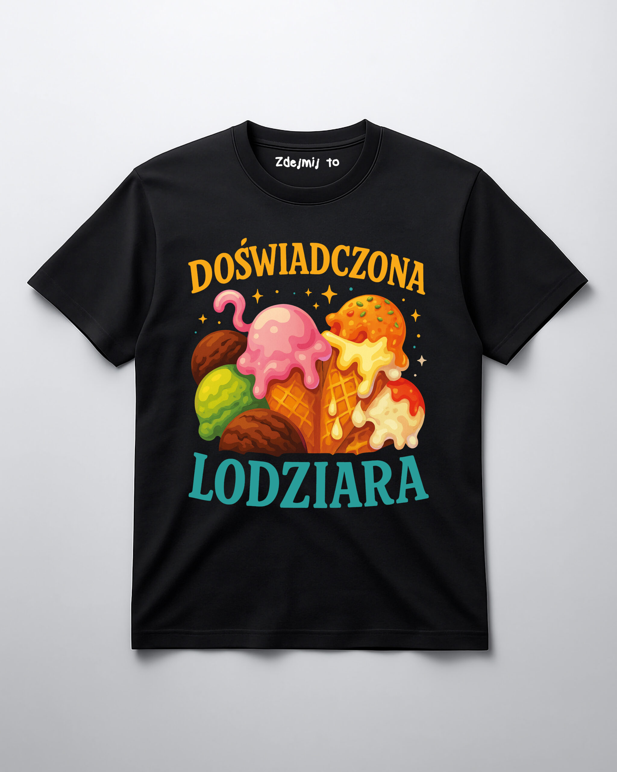 Koszulka, która zostawia zero miejsca na niedopowiedzenia. „Doświadczona lodziara” – nadruk tak słodki, że aż boli zęby, a jednocześnie tak bezczelny, że nie da się przejść obok obojętnie. Idealna dla tych, którzy lubią żart grubą kreską i nie boją się spojrzeń pełnych niedowierzania. Druk DTF – wytrzyma więcej niż niejedna gałka w upalny dzień.