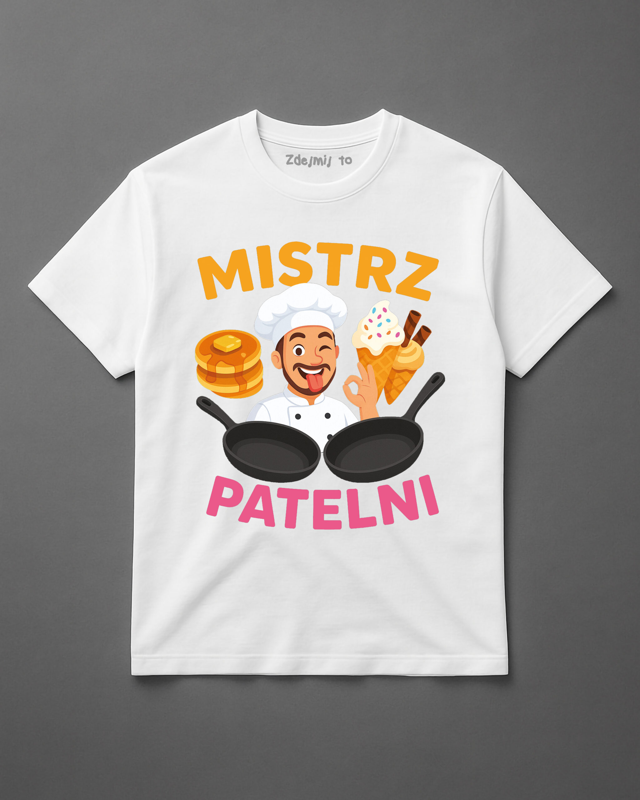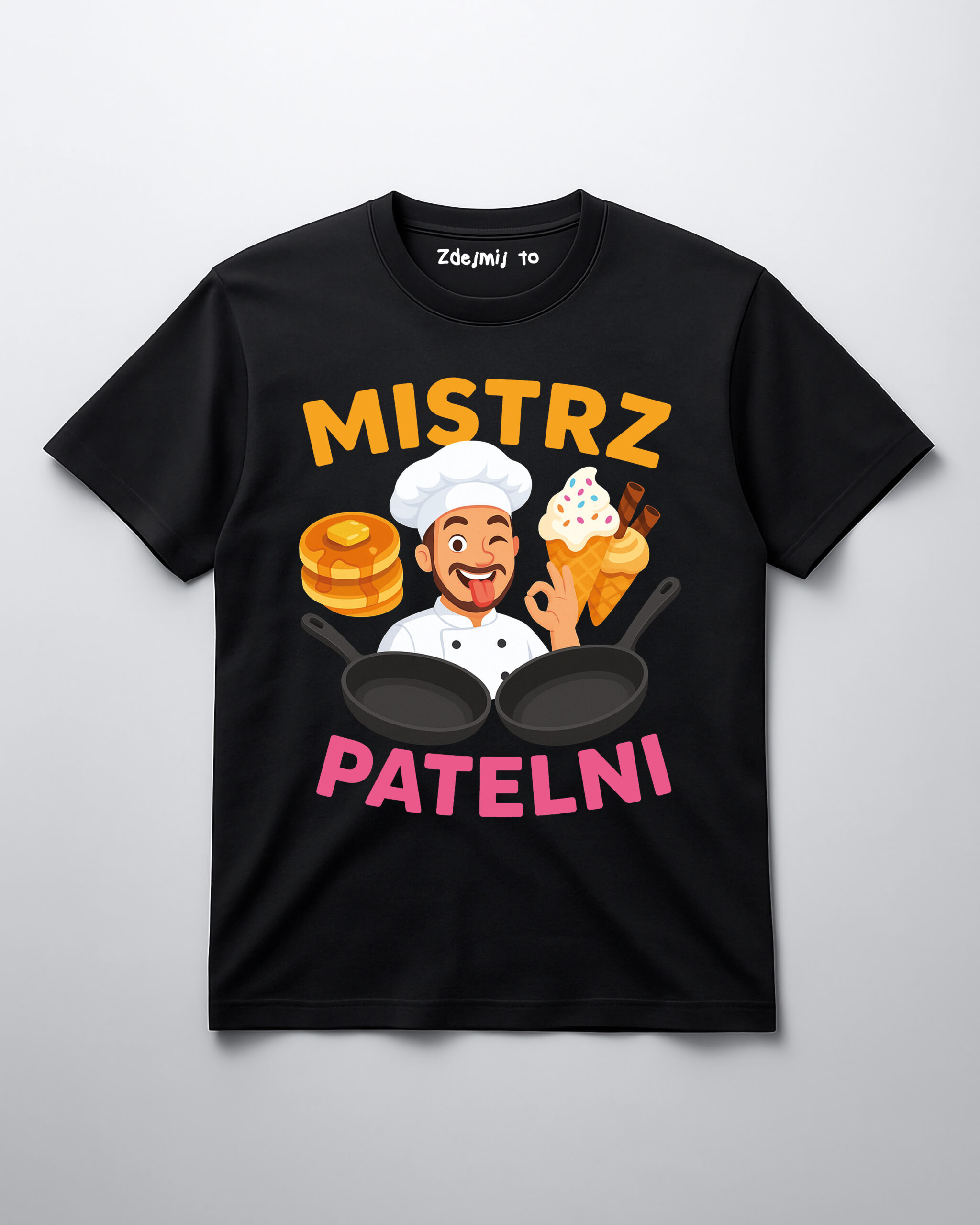 Koszulka „Mistrz Patelni” to gratka dla każdego, kto w kuchni czuje się jak na własnym ringu 🍳👨‍🍳. Idealna dla fanów smażenia, gotowania i memicznego stylu życia. Druk DTF – wytrzyma każde pranie i każdą kuchenną bitwę.