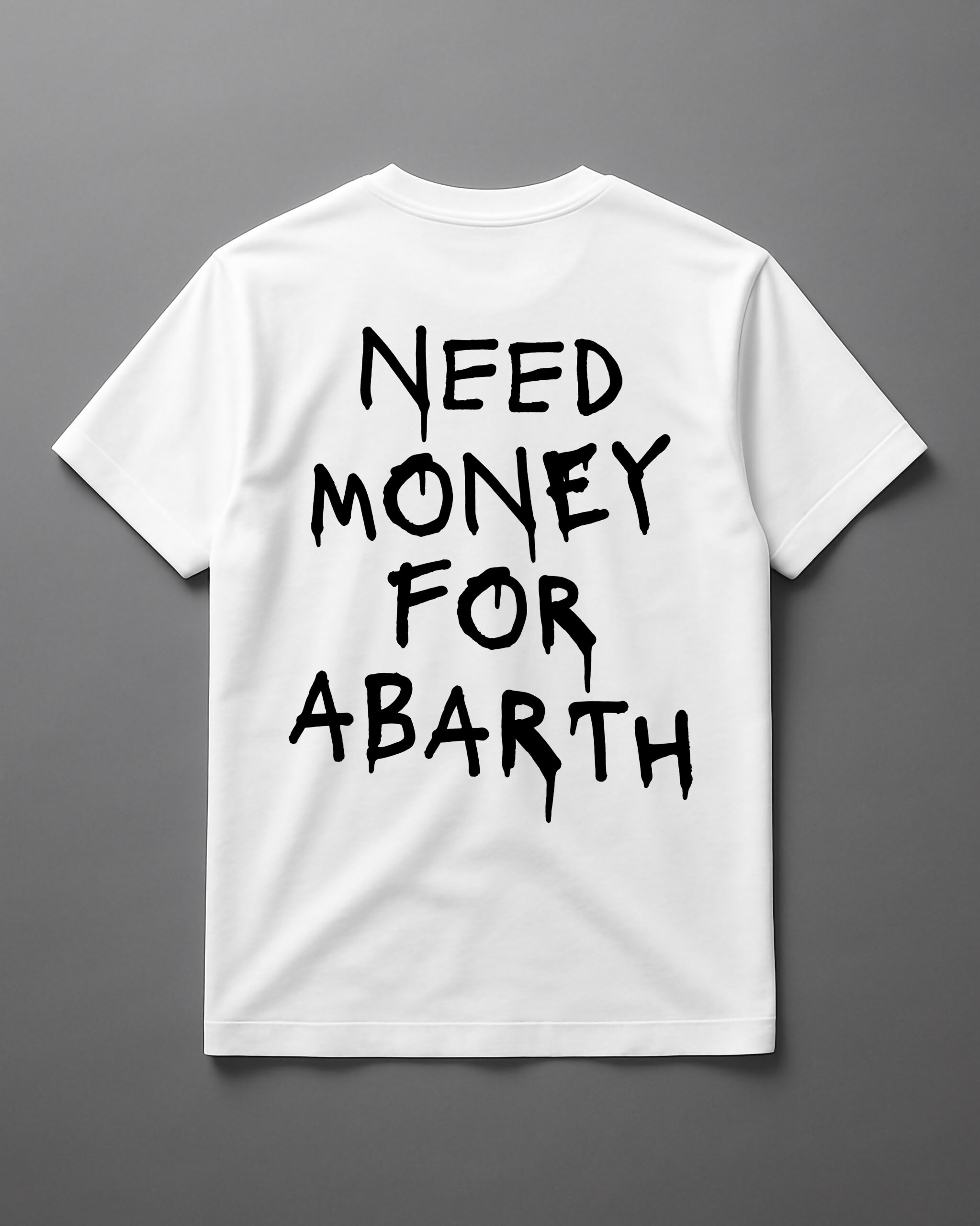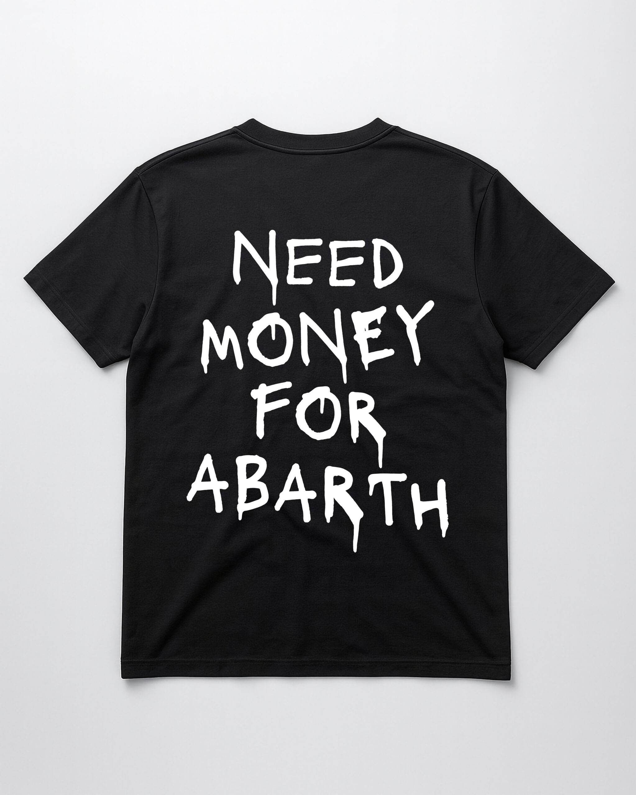 Koszulka Need Money For Abarth – prosty komunikat bez ściemy: kasa potrzebna, cel jasny, marzenia na czterech kołach same się nie opłacą, a trwały nadruk DTF zniesie więcej niż portfel, bo nie pęka, nie spiera się i zostaje na długo, nawet jeśli hajs dalej się nie zgadza.