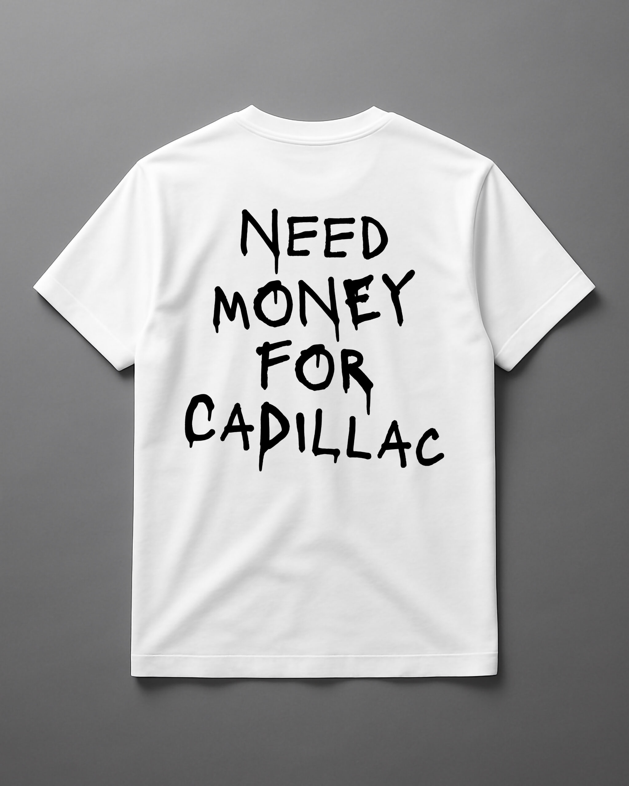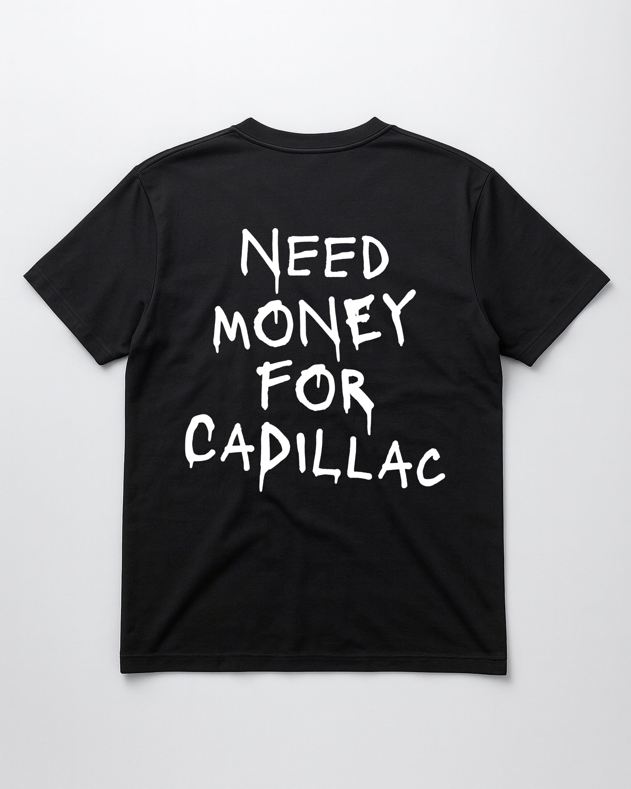Koszulka Need Money For Cadillac to ironiczny statement dla fanów amerykańskiej motoryzacji, prosty przekaz z dystansem i humorem, wyrazisty nadruk przyciąga uwagę i jasno mówi, że marzenia mają swoją cenę.