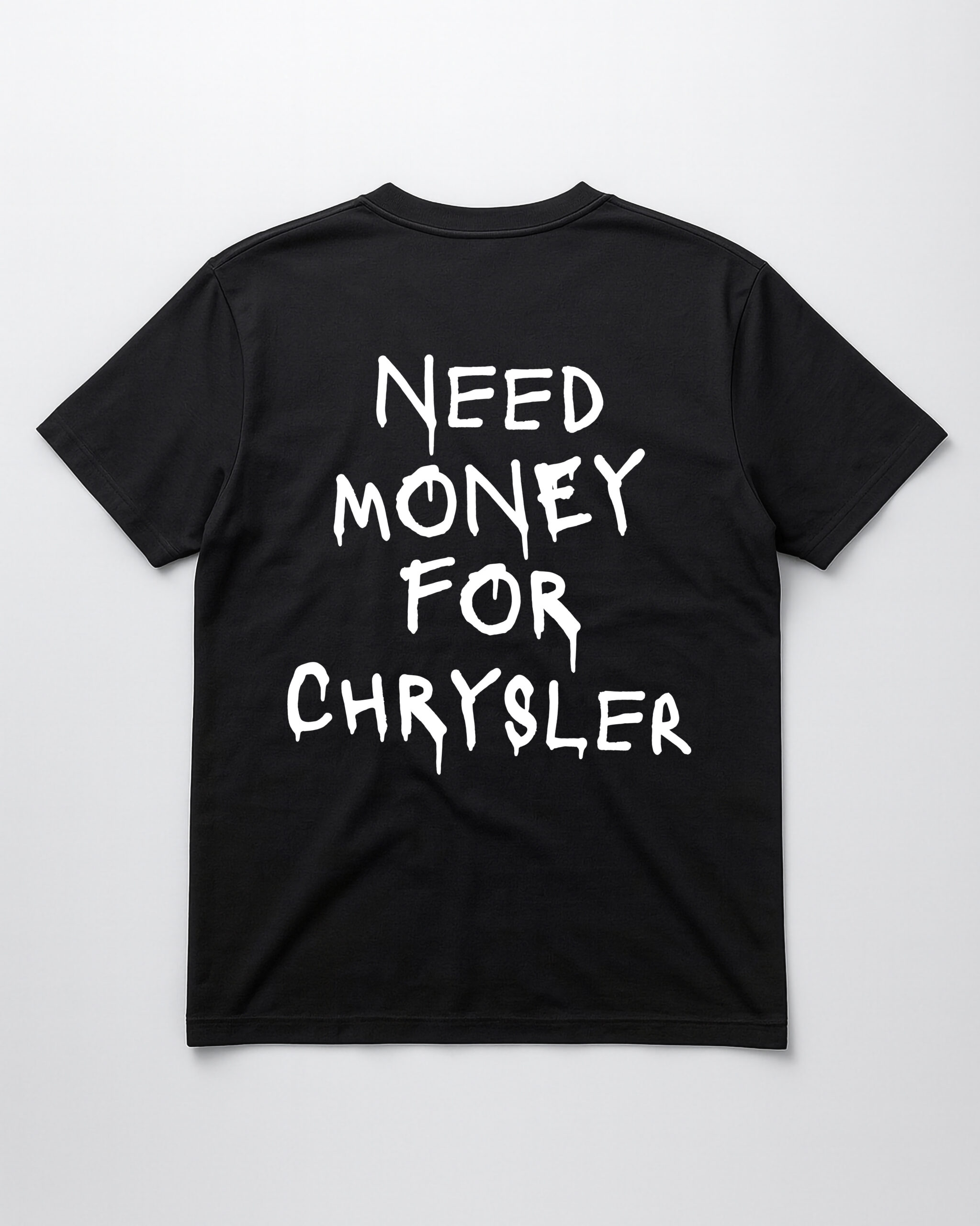 Koszulka Need Money For Chrysler to ironiczny hołd dla marki, która przez dekady łączyła wielkie silniki, surowy styl i ambicję bycia krok przed wszystkimi, nadruk wykonany trwałym drukiem DTF jest odporny na pranie i ścieranie, więc tekst zostaje na miejscu nawet wtedy, gdy portfel po kolejnych pomysłach Chryslera znowu świeci pustkami.
