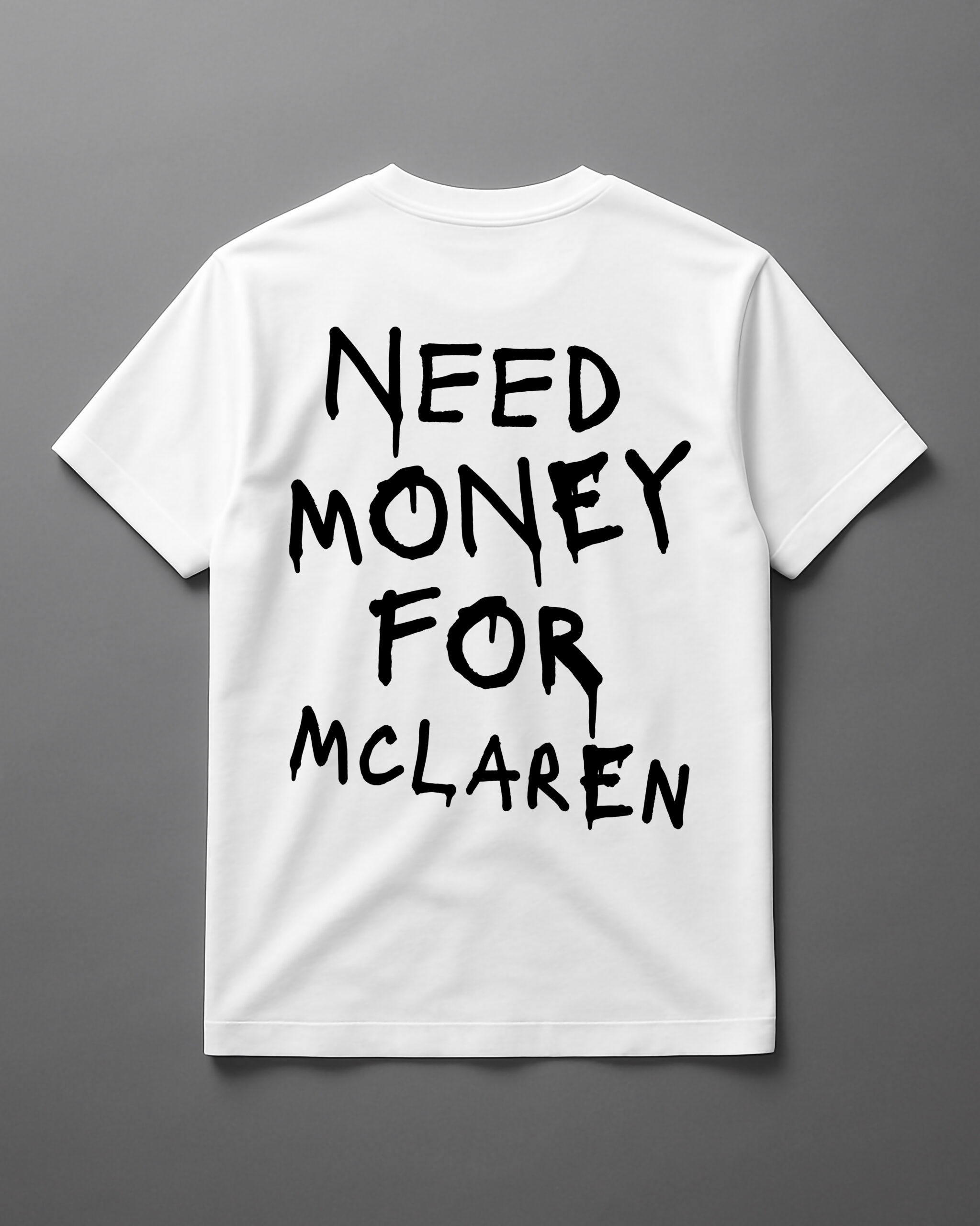 Koszulka, która nie owija w bawełnę – każdy grosz idzie na McLarena. Nadruk tak szczery, że aż wygląda jak kartka trzymana pod światła na skrzyżowaniu. Idealna dla ludzi, którzy wiedzą, że hatchback z 2004 to tylko etap przejściowy w drodze po karbonowe marzenia. Druk DTF – nie spierze się, nawet jeśli twoje auto pierze cię rachunkami za naprawy.