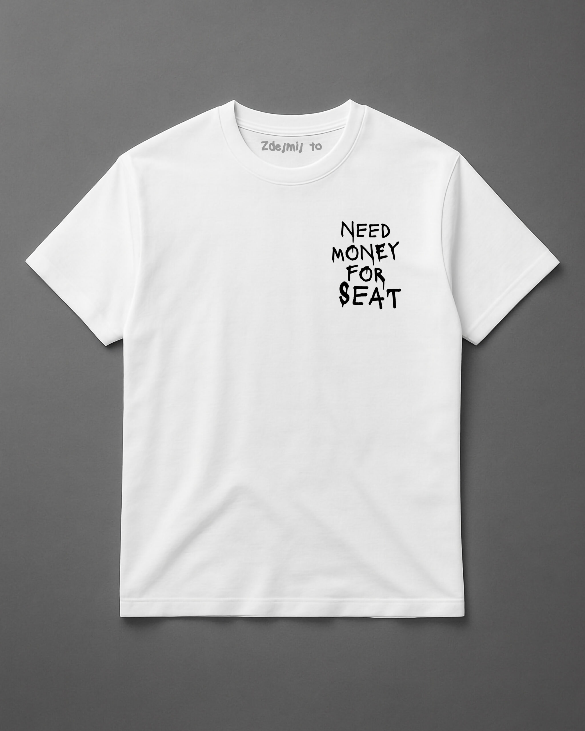 Koszulka Need Money for SEAT to prosty motoryzacyjny żart dla fanów marki, wyrazisty napis przyciąga uwagę a trwały nadruk DTF gwarantuje intensywny efekt i odporność na pranie.