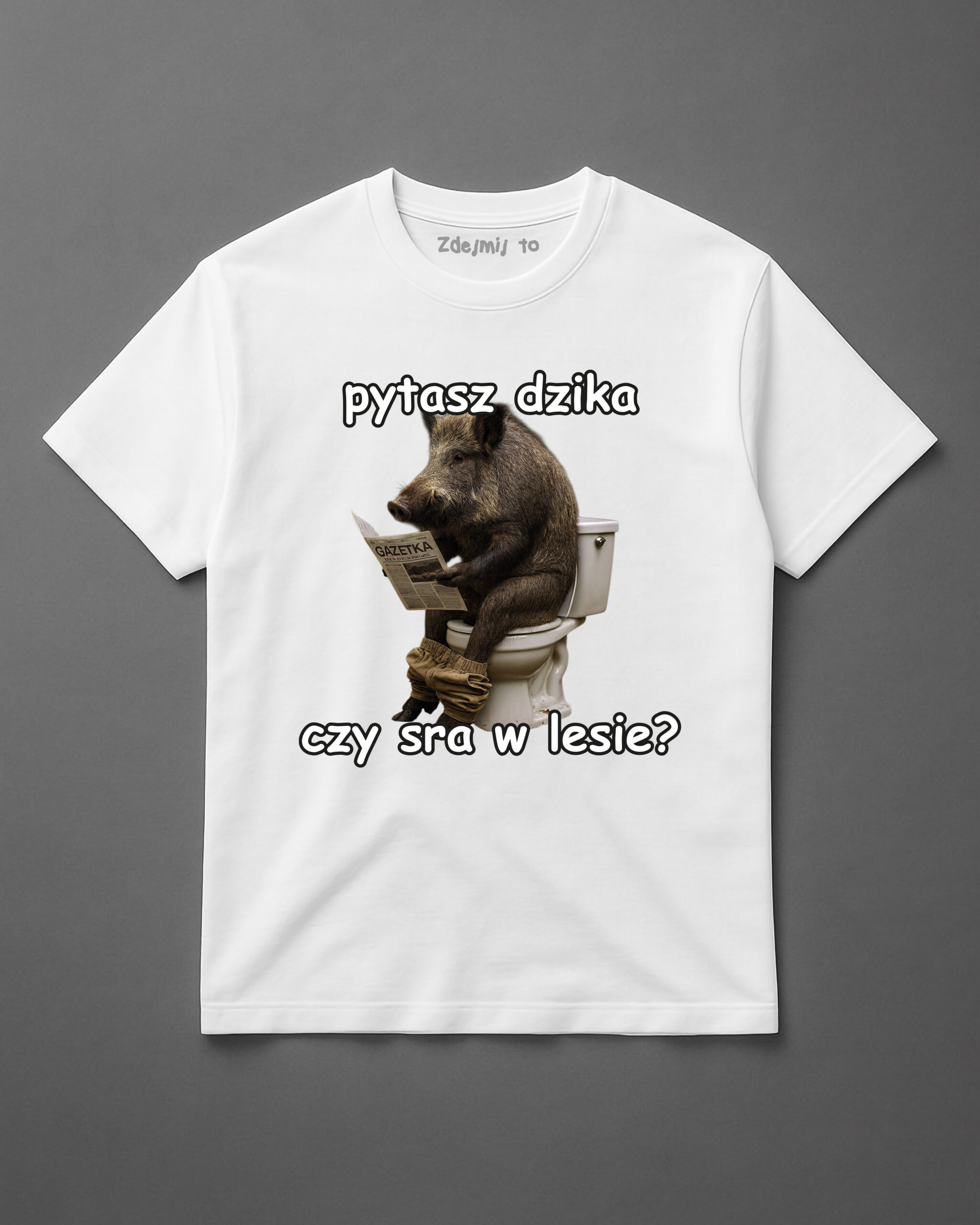 Śmieszna koszulka Pytasz Dzika, Czy Sra W Lesie – idealna na prezent